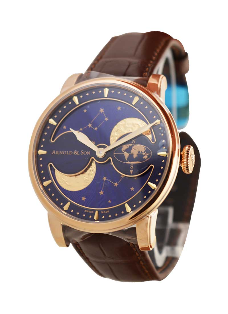 HM Double Hemisphere Perpetual Moon in Rose Gold On Brown Crocodile Leather Strap with Blue Guilloche Dial 1GLAR.U03A.C122A