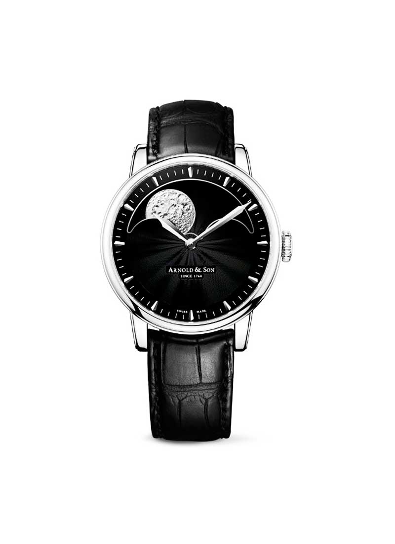 HM Perpetual Moon 42mm in Steel on Black Alligator Leather Strap with Black Guilloche Dial 1GLAS.B01A.C122S