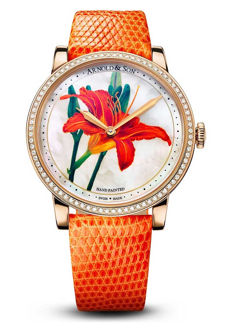 HM Flowers 40mm in Rose Gold with Diamonds Bezel on Orange Lizard Leather Strap with White MOP Dial 1LCMP.M06A.L511A