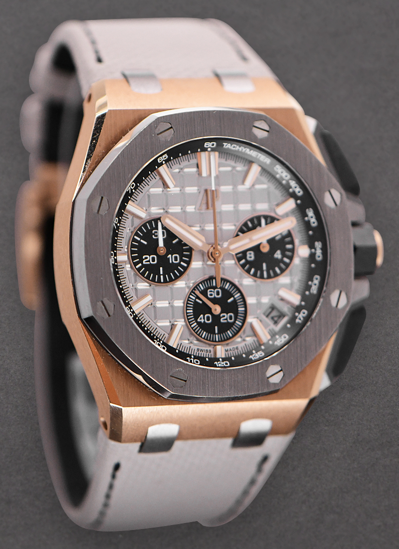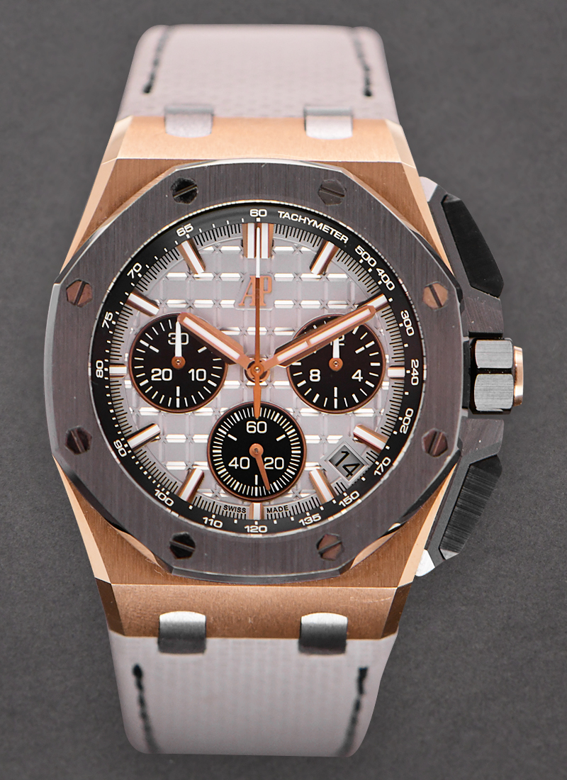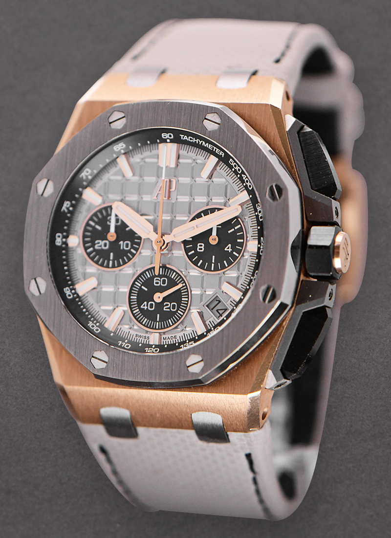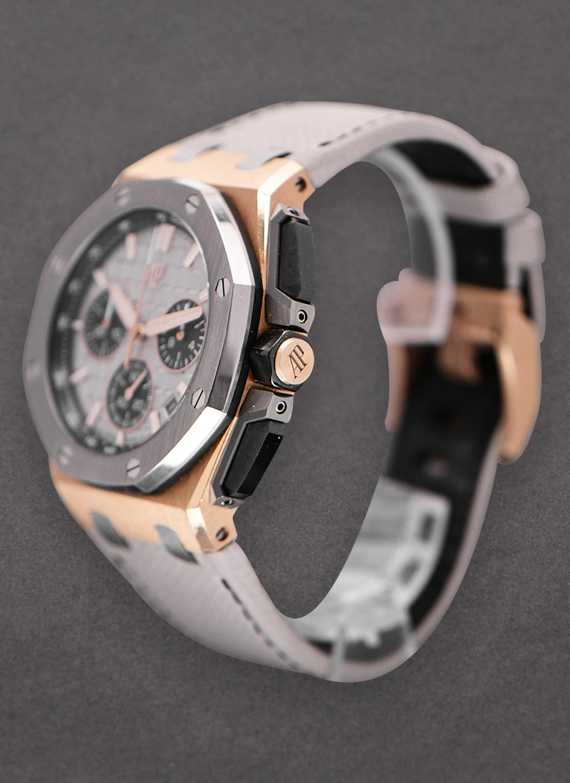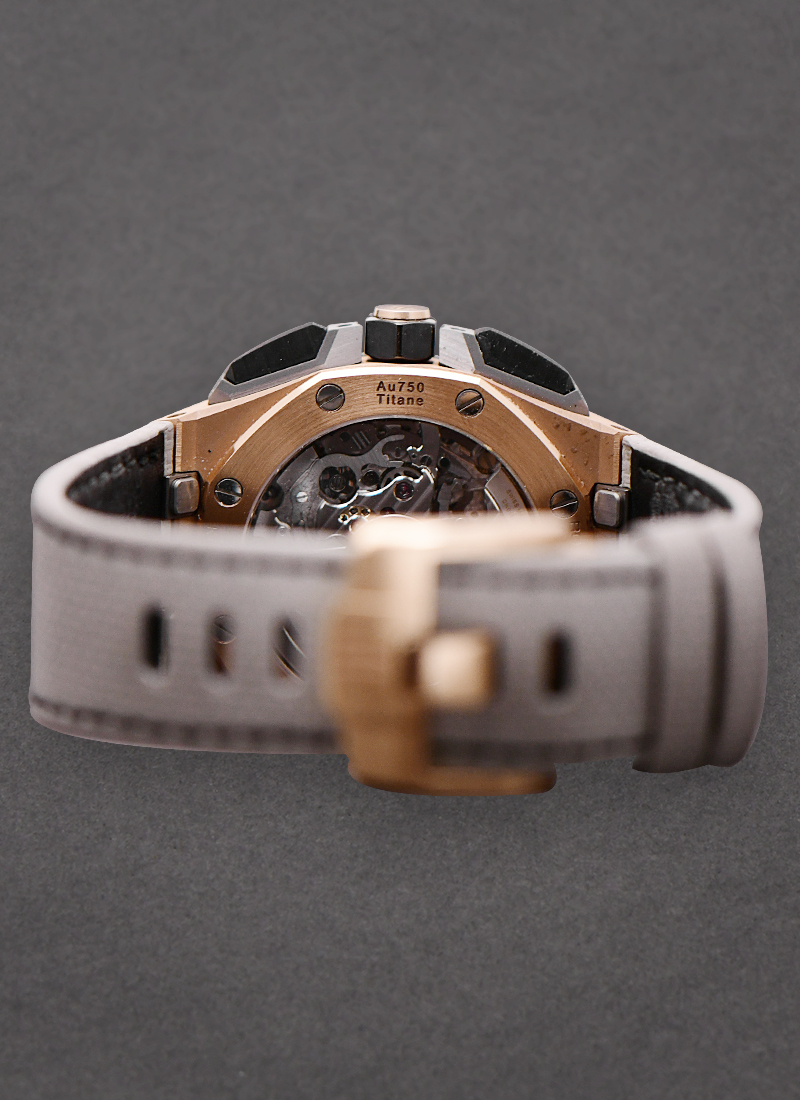 Royal Oak Offshore Chronograph 43mm in Rose Gold with Titanium Bezel on Grey Strap with Grey Dial 26420OI.OO.A015VE.01