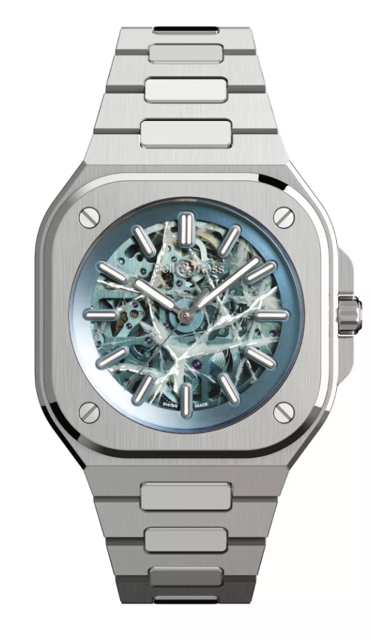 BR-05 40mm in Steel - Limited Edition of 250 Pieces on Steel Bracelet with Arctic Blue Skeleton Dial BR05A AB SKST/SST