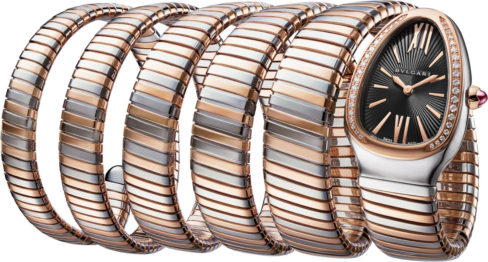 Serpenti Tubogas 35mm in Steel with Rose Gold Diamond Bezel on Steel and Rose Gold Bracelet with Black Dial 102621