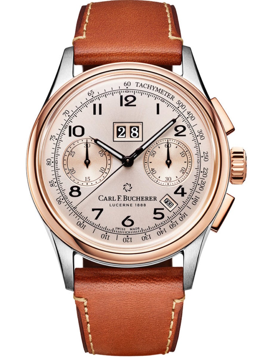 Heritage BiCompax Annual in Steel with Rose Gold Bezel - Limited to 888pcs on Cognac Brown Calfskin Leather Strap with Rose Dial 00.10803.07.42.01