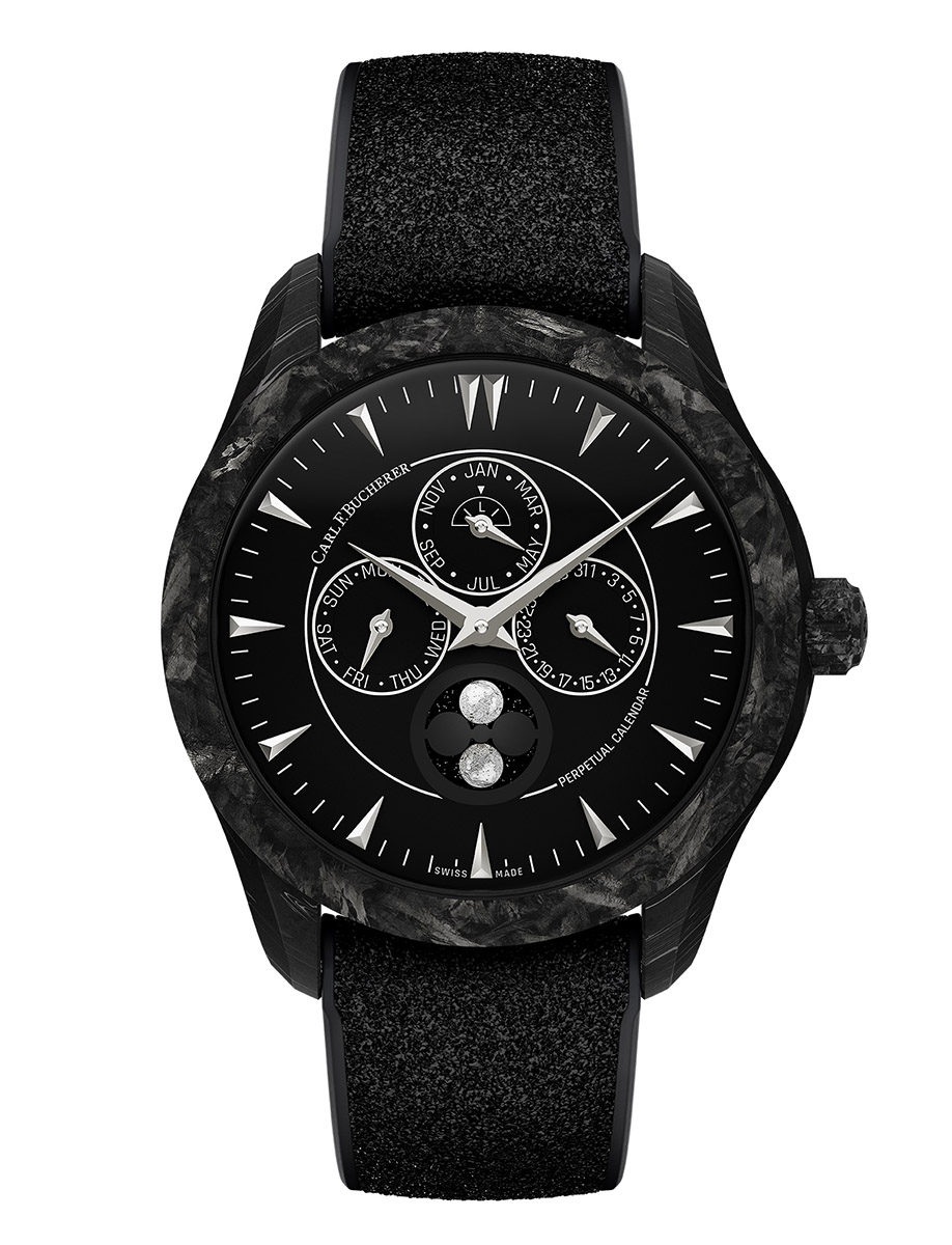 Manero Peripheral Perpetual Calendar 41.6mm in Forged Carbon on Black Rubber Strap with Black Dial - Limited to 88pcs 00.10916.16.33.01