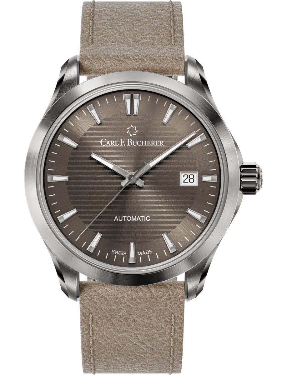 Manero Urban 38mm in Steel on Grey Vegan Leather Strap with Brown Dial 00.10929.08.93.01