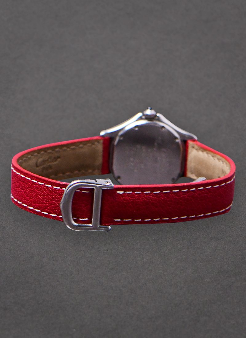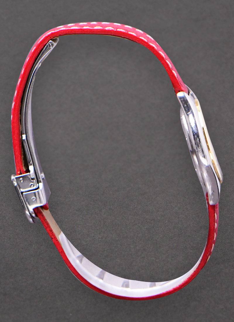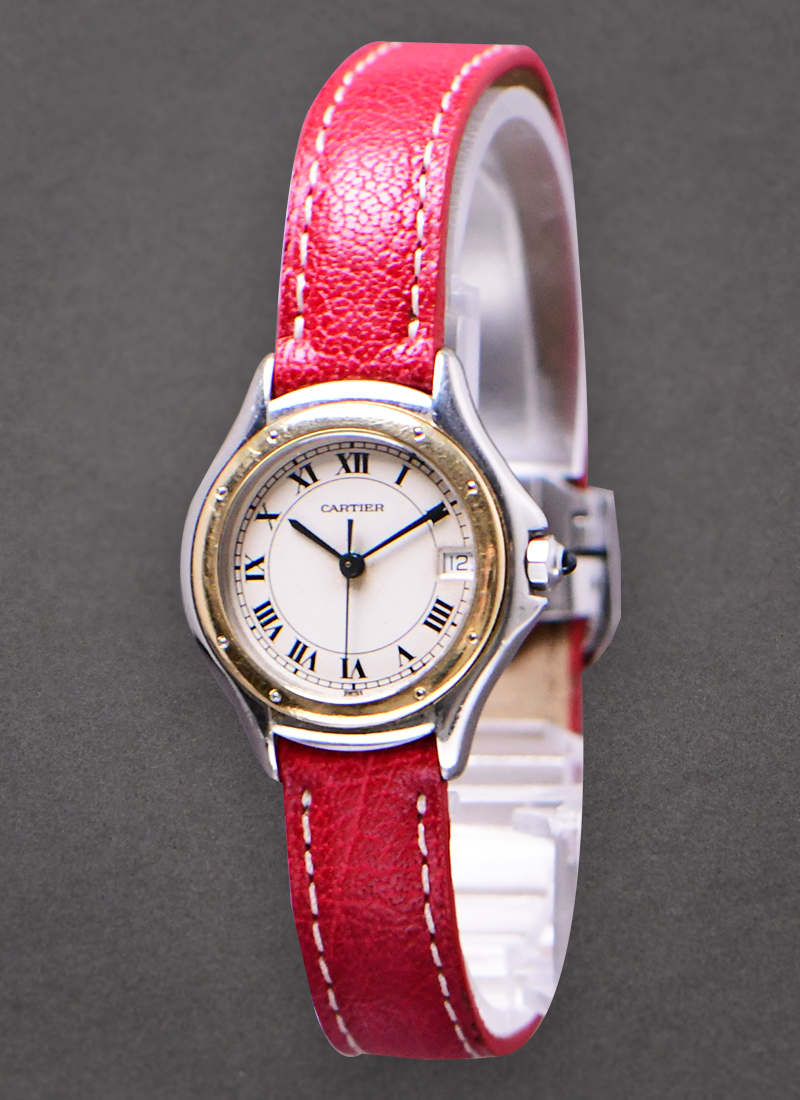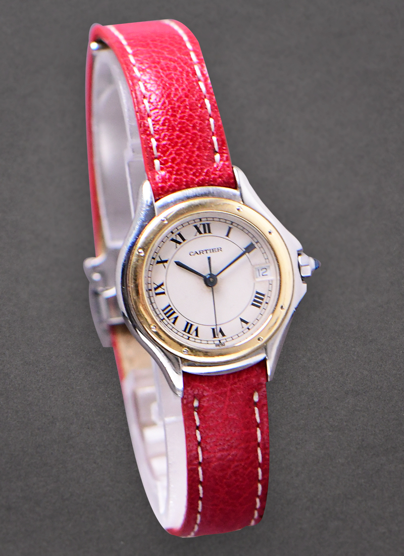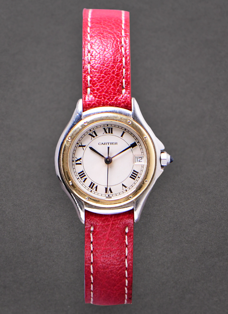 Cougar 28mm Quartz in Steel with Yellow Gold Bezel on Red Cartier Strap with Beige Dial 187906