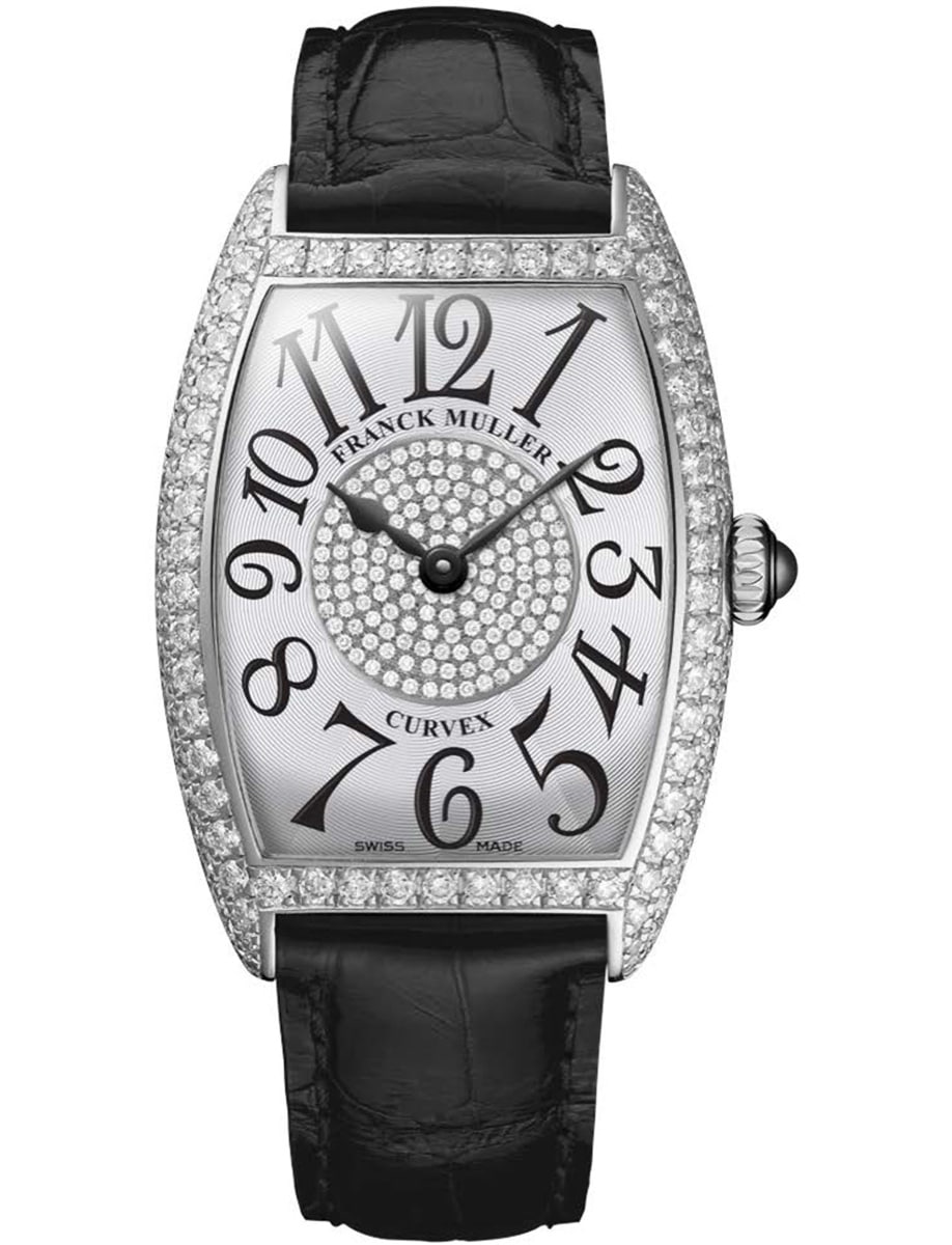 Cintree Curvex 25mm Quartz in White Gold with Diamond Bezel on Black Alligator Leather Strap with Silver Diamond Dial 1752QZD1PWGE