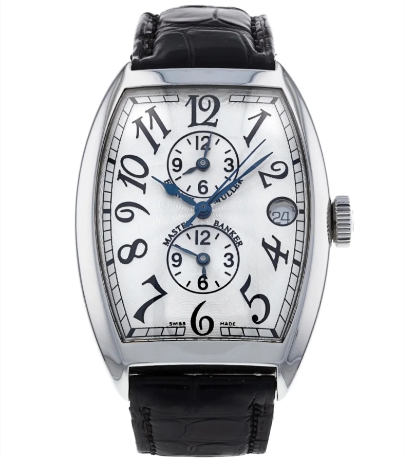 Master Banker 5850 in Steel on Black Crocodile Leather Strap with Silver Dial 5850 MB