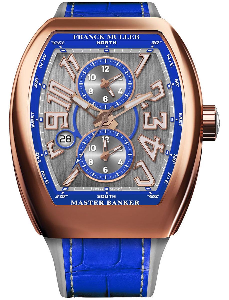 Vanguard Master Banker 45mm in Rose Gold on Blue Alligator Leather Strap with Grey Dial V45MBSCDTBL5NGR