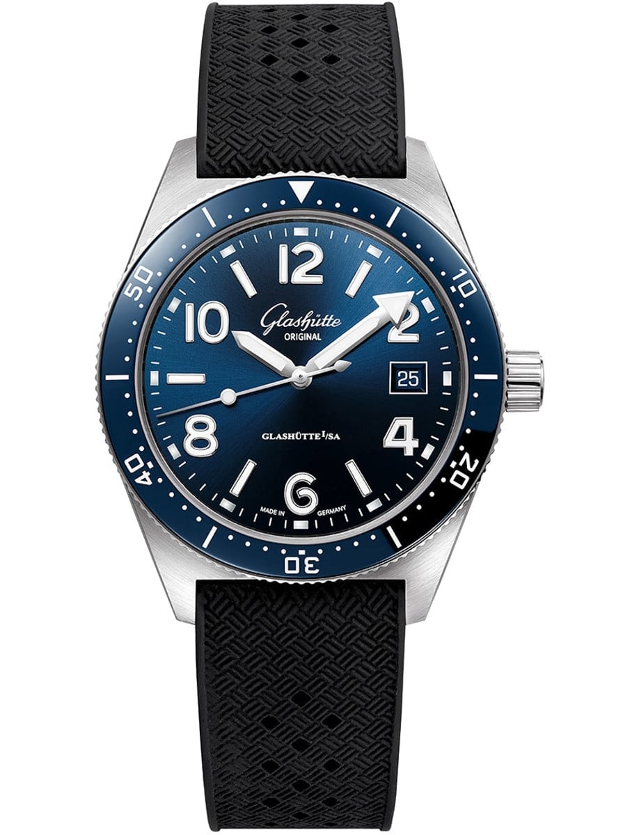 SeaQ Date 39.5mm in Steel with Blue Bezel on Black Rubber Strap with Blue Dial 1 39 11 09 81 06