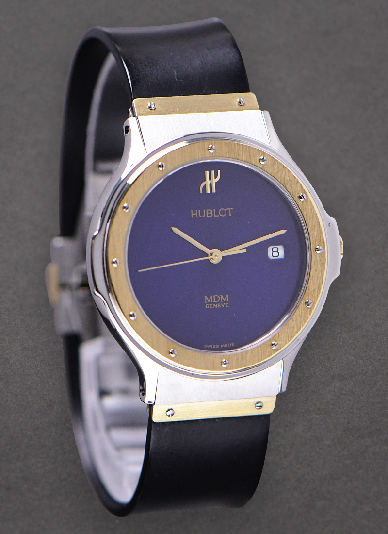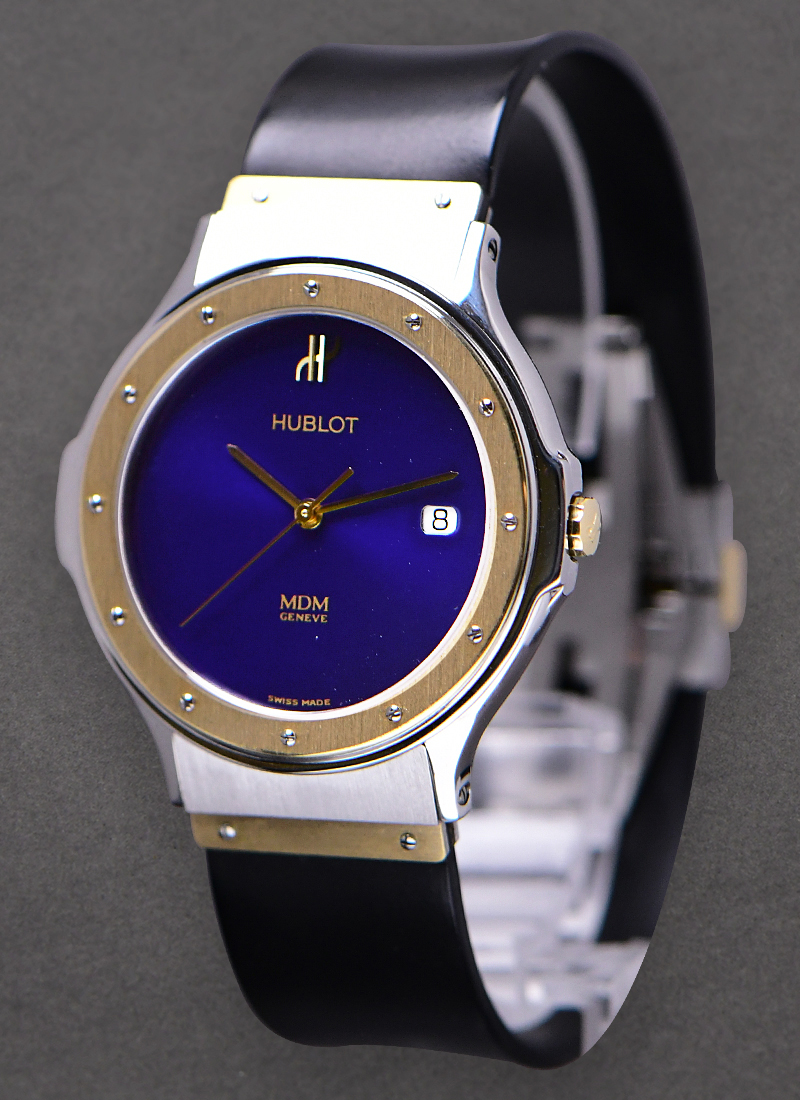 Classic 36mm MDM Geneve Quartz 2 Tone on Black Rubber Strap with Blue Dial 1521.2