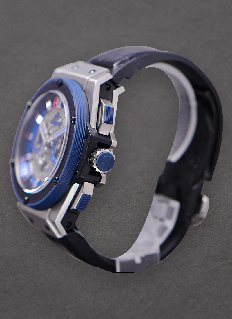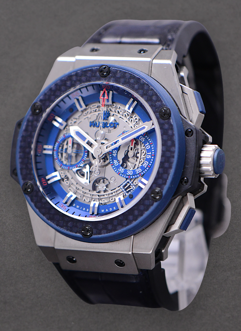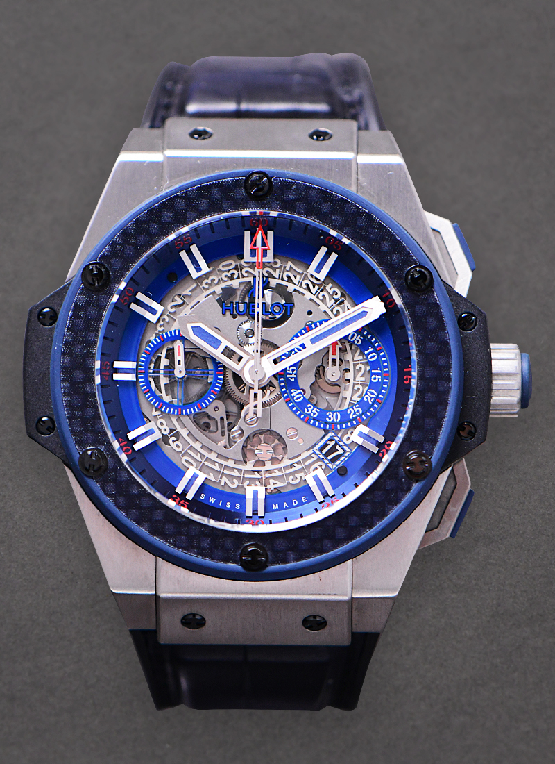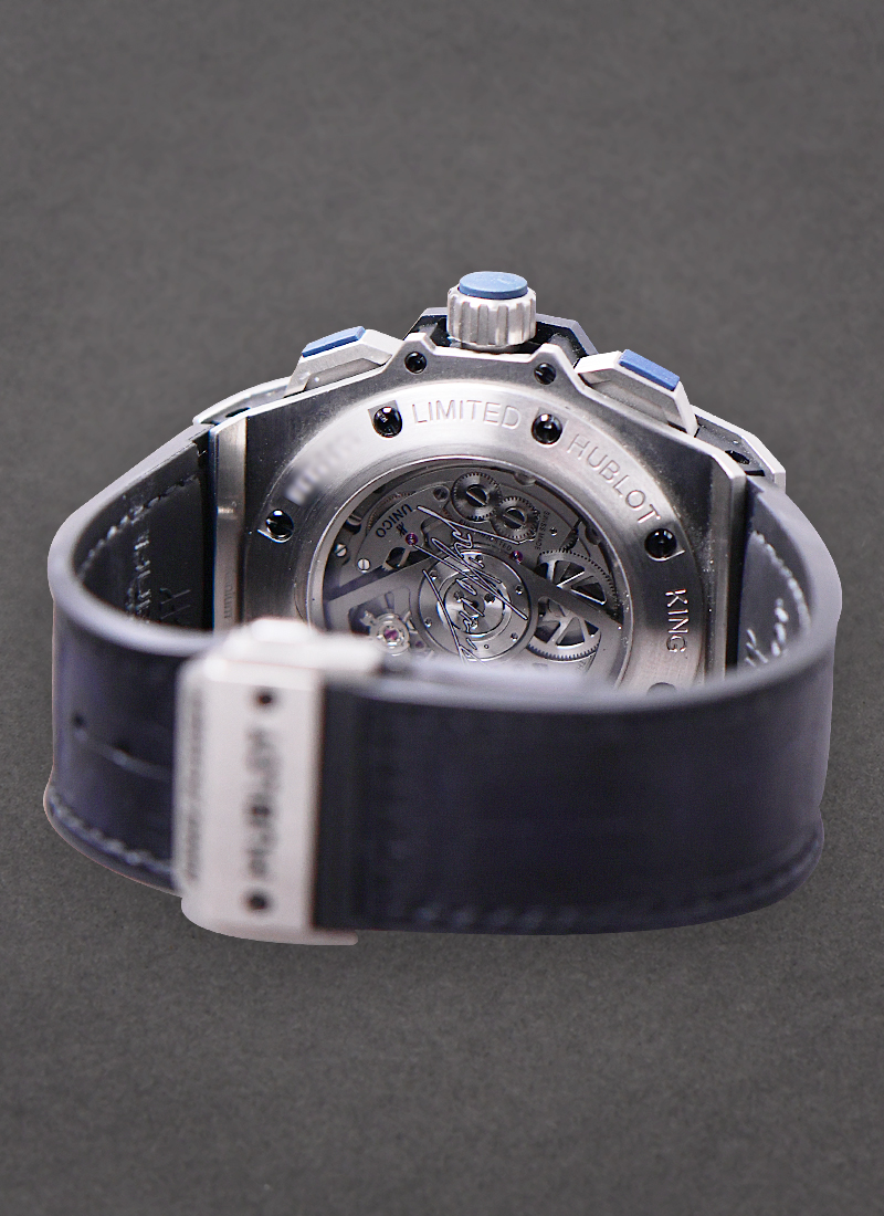 King Power Special One in Titanium with Blue Ceramic Bezel On Blue Alligator Strap with Grey Skeleton Dial 701.NQ.0137.GR.SPO14