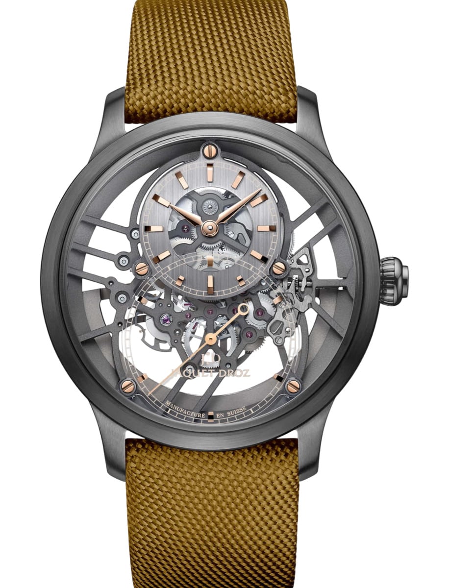Grande Seconde Skelet One in Black Ceramic On Gray Fabric Strap with Skeleton Dial J003525547