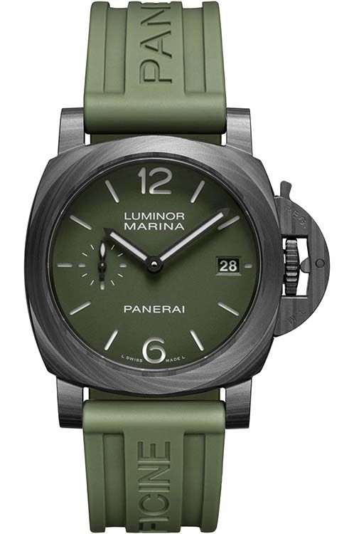 PAM 1526 - Luminor Quaranta 44mm in Carbotech on Green Rubber Strap with Green Dial PAM01526