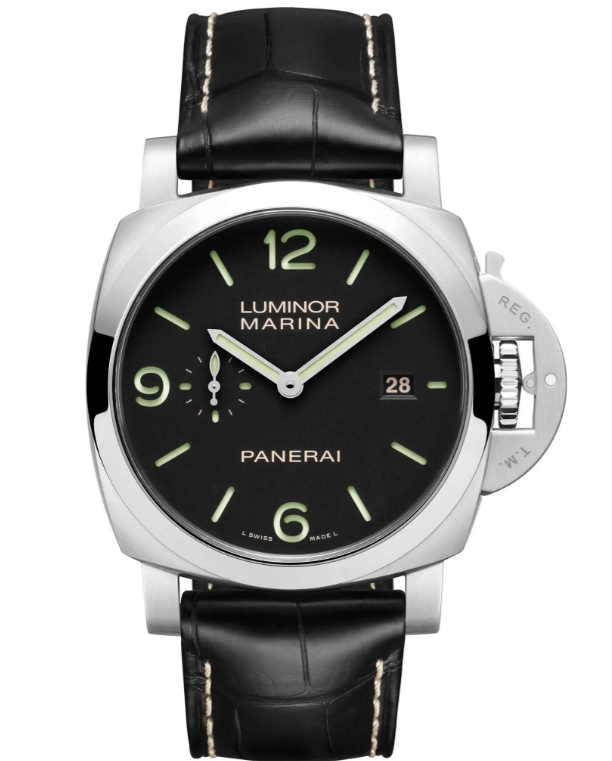 PAM 3312 - Luminor Marina 44mm in Steel on Black Crocodile Leather Strap with Black Dial PAM03312