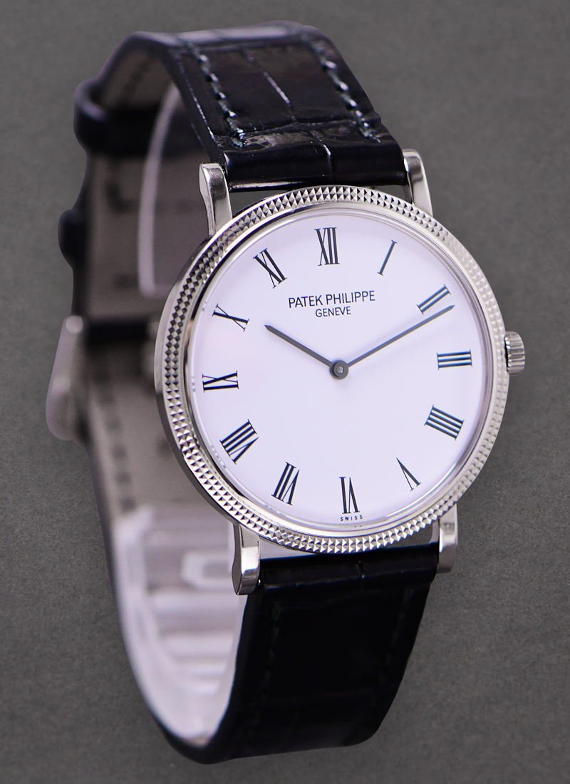 Calatrava 5120G in White Gold on Black Alligator Leather Strap with White Dial 5120G 001