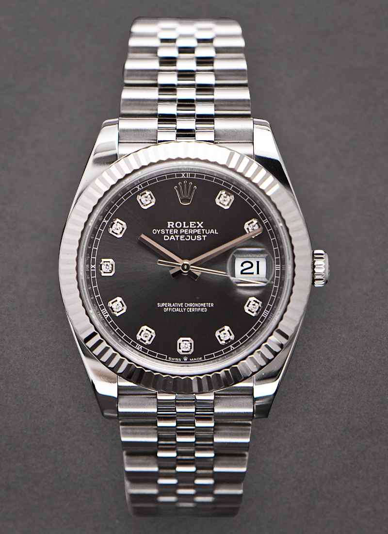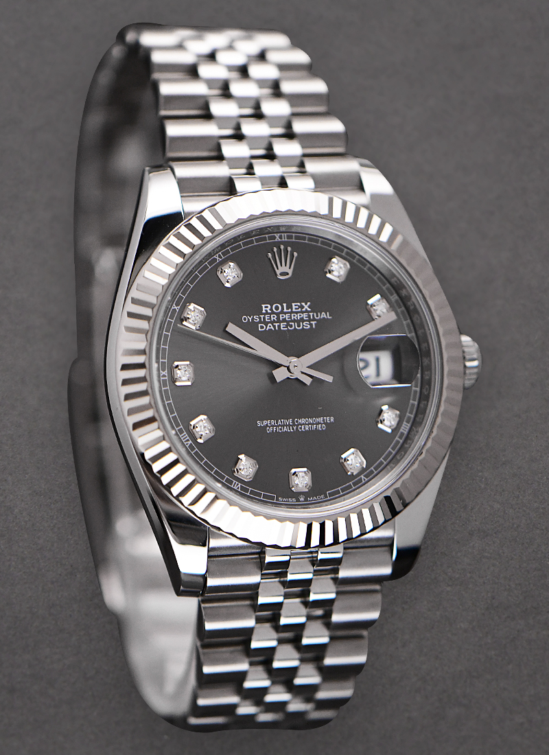 Datejust II 41mm with White Gold Fluted Bezel on Jubilee Bracelet with Rhodium Diamond Dial 126334
