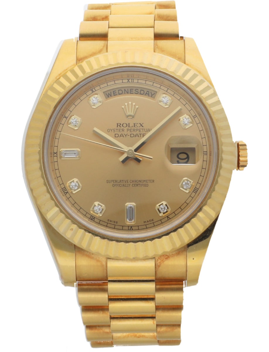 President Day-Date 41mm in Yellow Gold Fluted Bezel on President Bracelet with Champagne Diamond Dial 218238