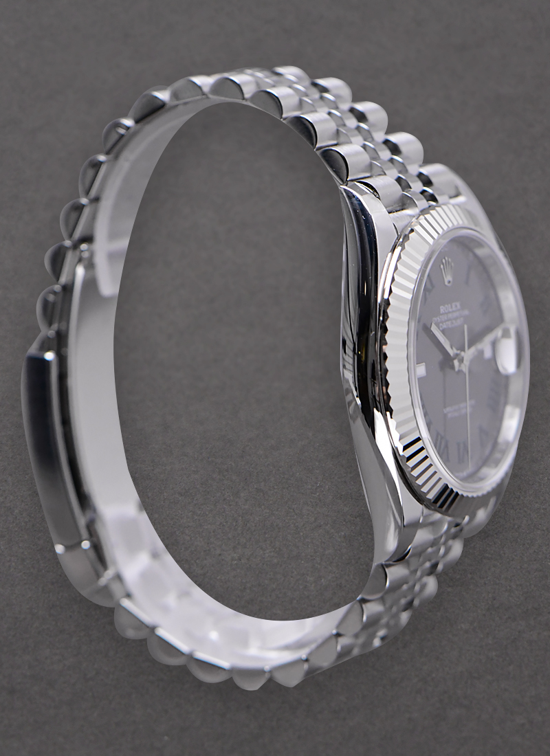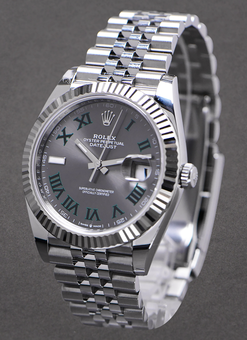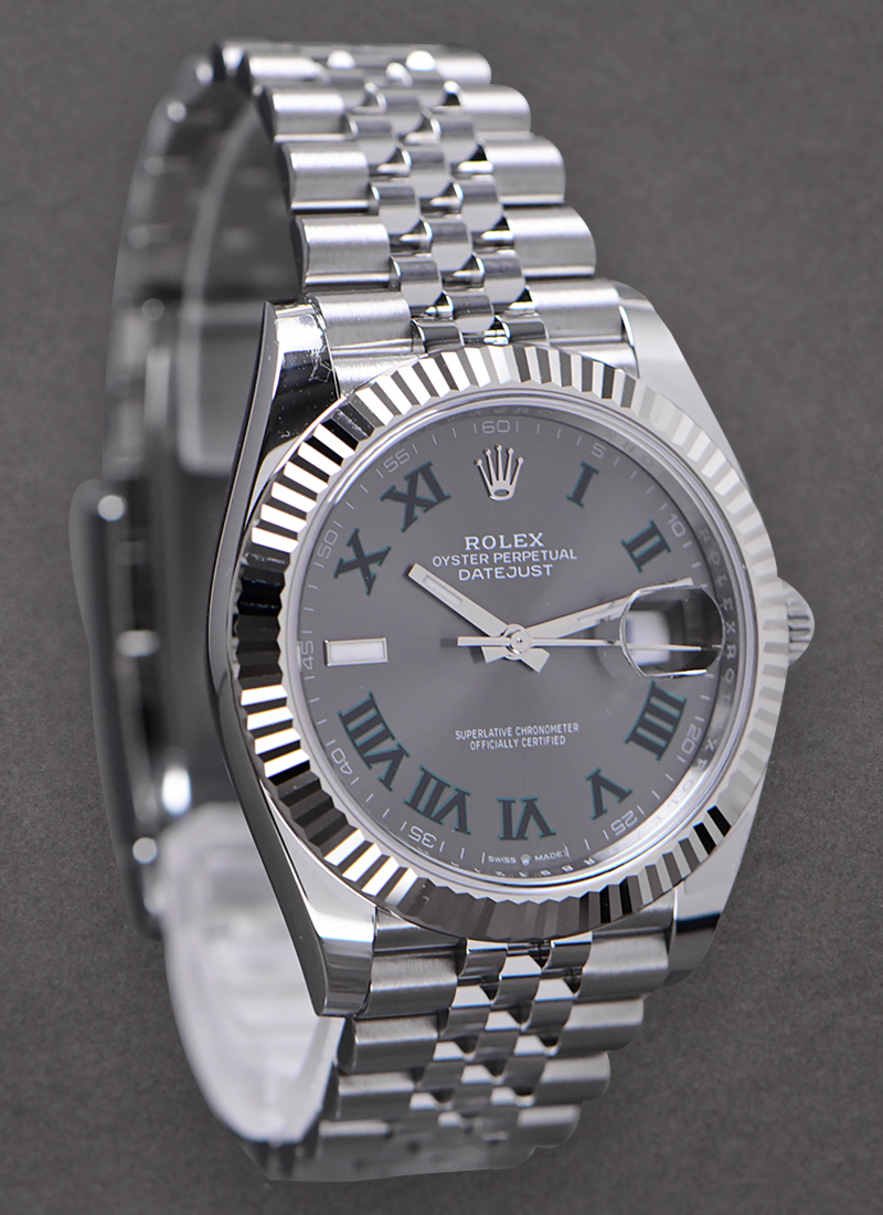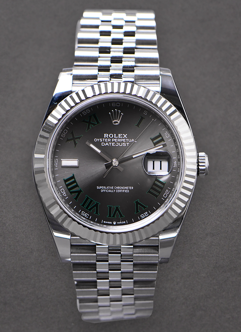 Datejust 41mm in Steel with White Gold Fluted Bezel on Jubilee Bracelet with Slate & Green Roman Wimbledon Dial 126334 0022