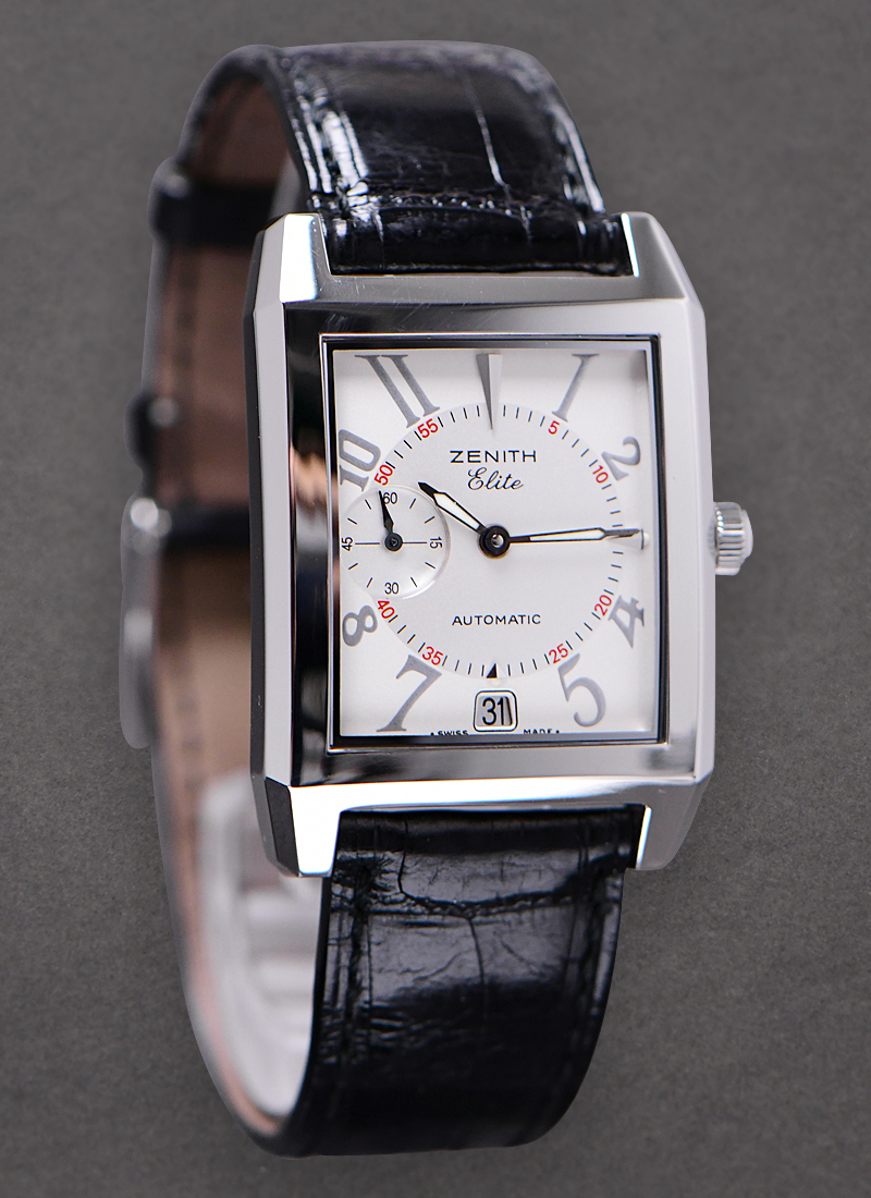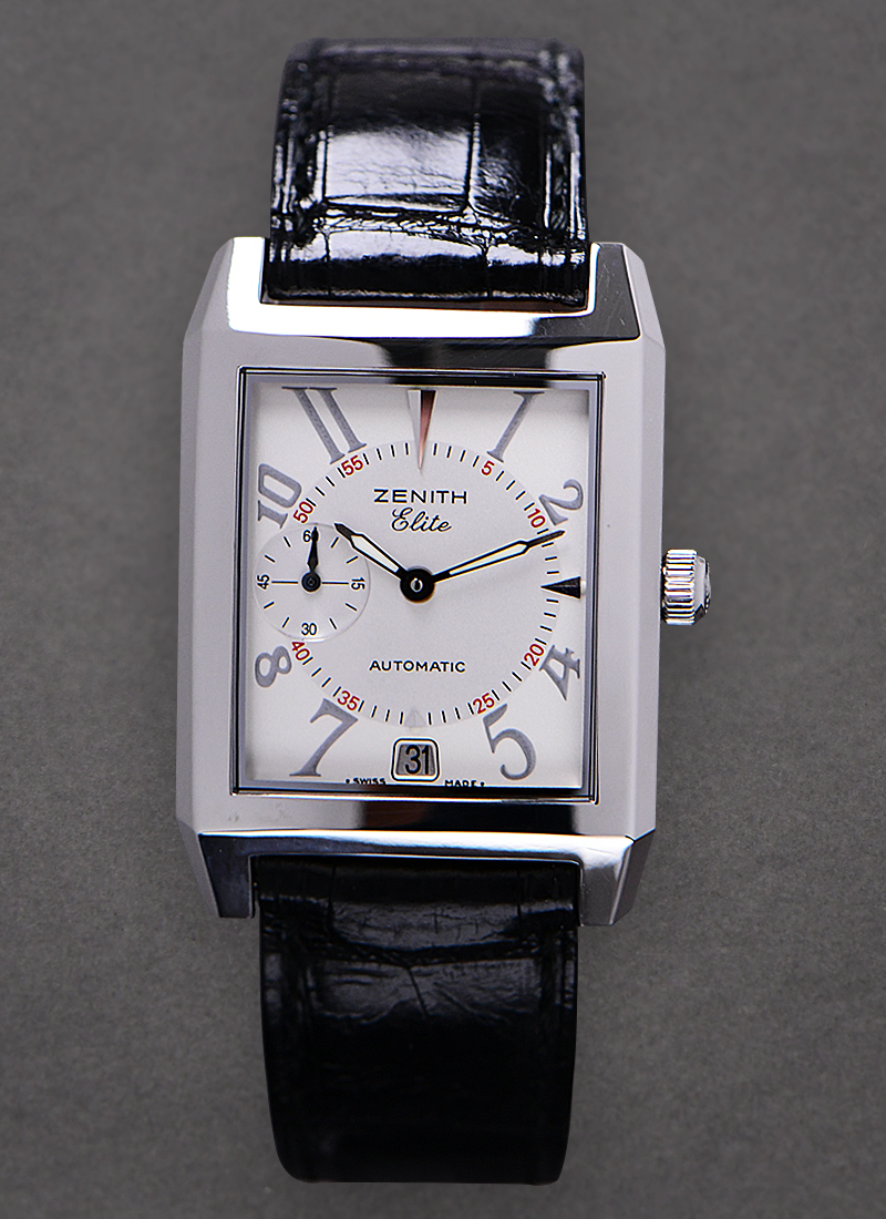 Port Royal Elite Rectangle Automatic in Steel On Black Alligator Strap with Silver Dial 01 0251 684 01 C459